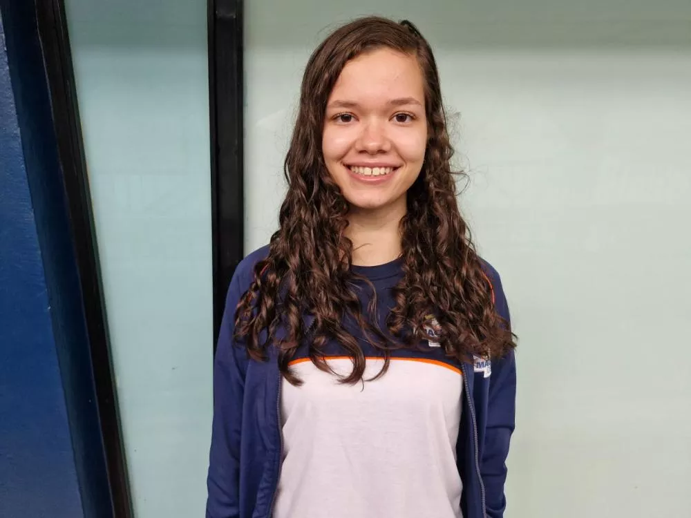 Alanys dos Santos Gonçalves, 17 anos, aluna do 2° ano do Ensino Médio, informou que o primeiro dia de aula está sendo muito bom e que ela já está pensando no ENEM. A estudante vem prestando o ENEM desde o 1° ano para estar mais preparada para 2026, quando buscará de fato uma vaga na universidade.