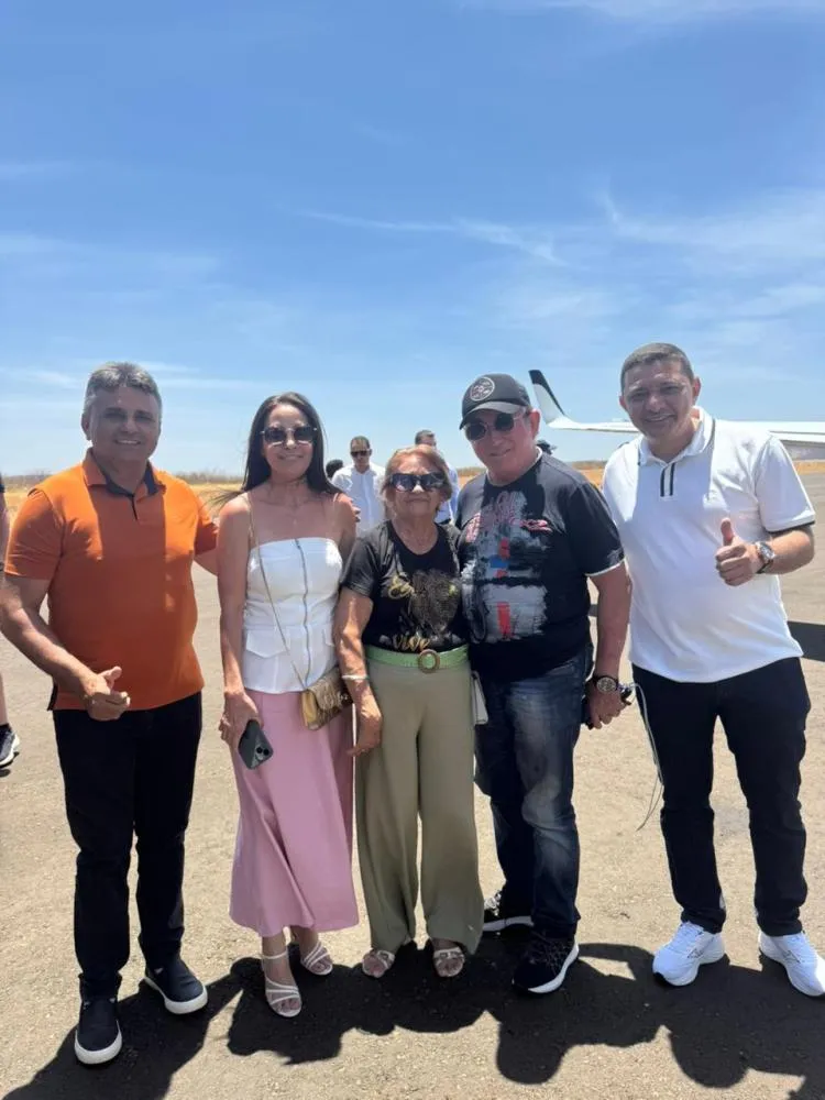 O cantor Amado Batista chegou ao aeroporto de Picos neste domingo e foi recepcionado pelo prefeito Marciano Macedo, pelo vice-prefeito Zênio Neves e por membros da equipe de secretários municipais.