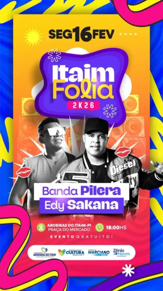 O Itaim Folia 2026 é uma realização da Prefeitura Municipal de Aroeiras do Itaim, por meio da Secretaria Municipal de Cultura, e tem como objetivo valorizar a cultura local, fortalecer o calendário festivo do município e proporcionar lazer à população durante o período carnavalesco.